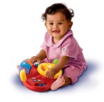 Beep beep? get moving with the Tiny Tot Driver! This brightly colored role-play toy introduces animals, colors, numbers, and places through fun phrases and realistic car sounds. Baby can spin the steering wheel to move the mini car and drive to familiar destinations, or press the chunky buttons to hear fun phrases. Features include a light-up horn button, non-breakable wing mirror for self-discovery, gear stick, and light-up traffic lights. Helps develop motor skills and encourages discovery and exploration